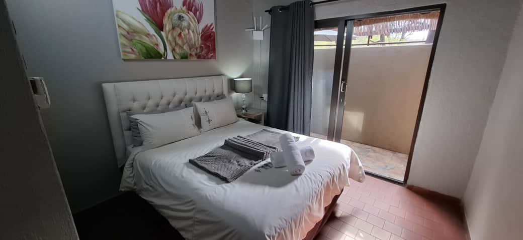 Discover the charm of Marloth Park, South Africa, with a stay in our Deluxe Double Room. Your perfect escape into nature and comfort. This peaceful haven features a refreshing pool with picturesque views, ideal for relaxing after a day of adventure. Inside, enjoy modern comforts such as air conditioning, a private entrance, and a stylish bathroom equipped with a shower and hairdryer.